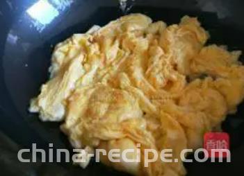 6. Pour in eggs and stir fry until cooked. Pour into a plate and set aside for later use.