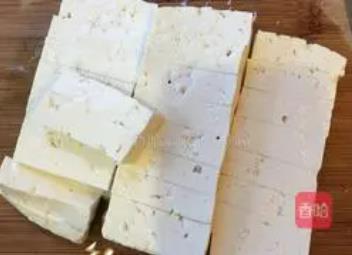 4. Put the tofu wrapped in batter into an oil pan and fry until golden brown, then remove it.