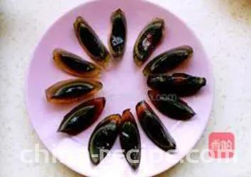 When cutting Century egg, flush the knife with water and cut it. Century egg does not touch the knife.