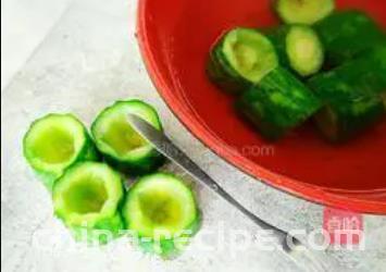5. Take out the cucumber and control the water to cool it down. Use a small fork to dig out the cucumber meat, or choose other tools