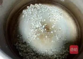 2. Prepare a pressure cooker and add an appropriate amount of water. Put the pre soaked Job's tears over heat and simmer slowly.