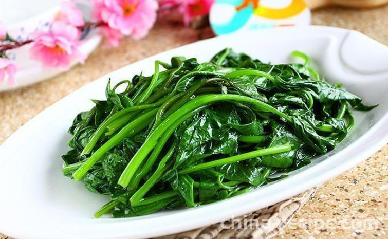 Peel off a layer of skin from the sweet potato leaves and stems, and stir fry them until they are particularly tender