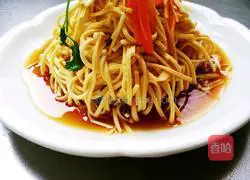 Scallion, ginger, and garlic shreds, extremely delicious. A small piece of scallion, ginger, and garlic shreds, one spoonful, extremely delicious