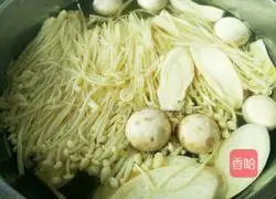 7. Then I cooked mushrooms. There happened to be many mushrooms at home, so I put them all in and they all liked to eat them