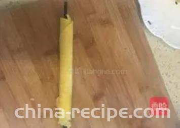 11. Place the fried pancake on the cutting board and quickly roll it up from one side to the other with chopsticks. After cooling, remove the chopsticks. It's a Chicken rolls!