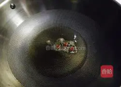 3. As the oil temperature increases and the dried chili peppers become fragrant, add spinach and stir fry quickly. Season with salt and turn off the heat.