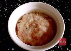 11. Add some crushed water chestnuts and stir evenly. Take about 100 grams of meat stuffing and knead it into Rice-meat dumplings.