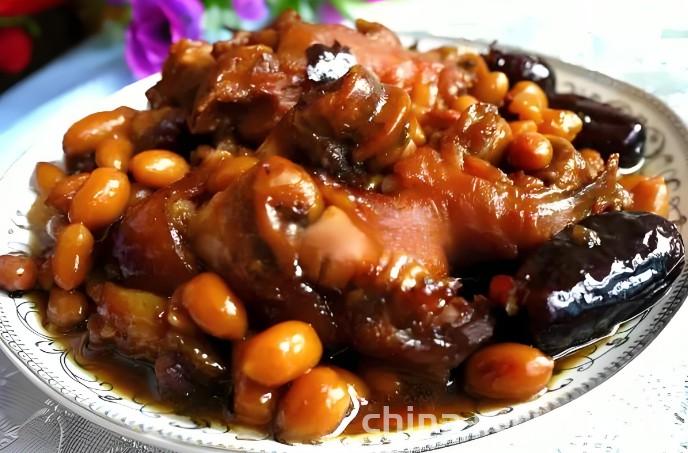 9. Add peanuts and jujubes, bring to a boil, then simmer on low heat for 1 hour before turning off the heat.
