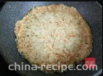 6. Heat the pot slightly, pour in the prepared batter, and spread it flat. Don't make the pot too hot, over medium to low heat.