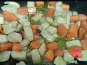 8. Stir fry diced carrots over high heat until they are completely cooked,