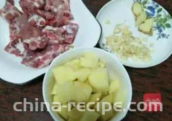 1. Prepare all the ingredients, wash the pork ribs and chop them into small pieces. Peel the potatoes and cut them into small pieces. Chop the garlic into small pieces and slice the ginger for later use